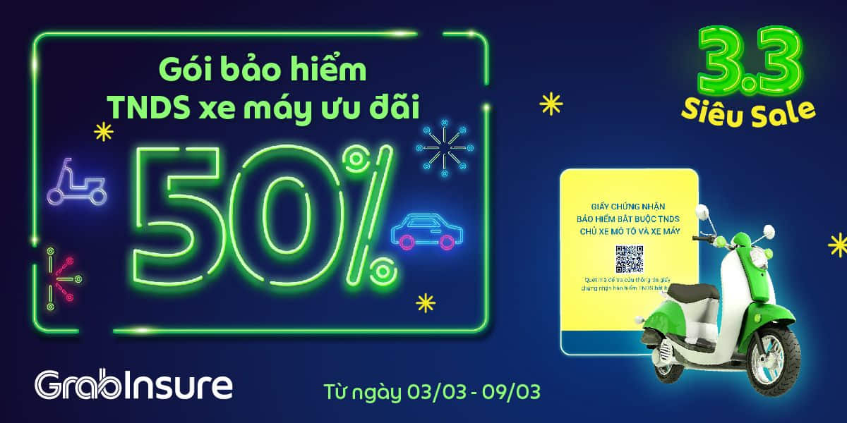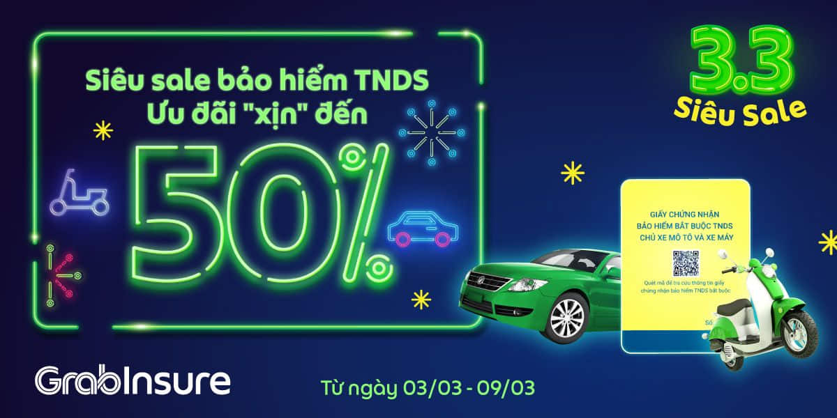 👉 Ghé GrabInsure mua ngay đi nè, đang có Siêu Sale 3.3, Bảo hiểm Trách nhiệm dân sự (TNDS) phiên bản điện tử ưu đãi đến 50% luôn nha bà con, ghé vô chốt đơn nhận ưu đãi nha. Trang bị đầy đủ giấy tờ để xuống phố thoải mái nhaaa.